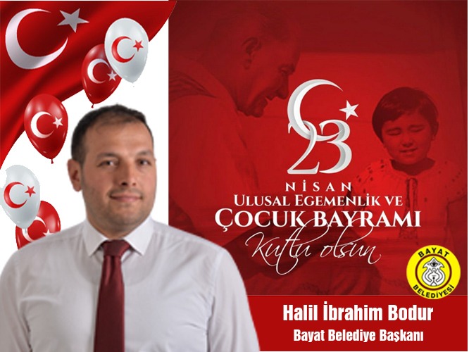 Bayat Belediye Başkanı Halil İbrahim Bodur 23 Nisan Ulusal Egemenlik ve Çocuk Bayramı dolayısıyla bir kutlama mesajı yayınladı: