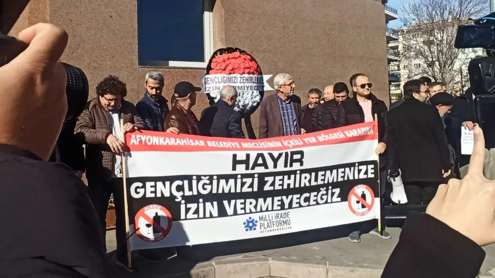 Milli İrade Platformu, Afyonkarahisar Belediye Meclisi'nin turizm bölgelerini içkili yer bölgesi olarak belirleme kararını protesto etti.