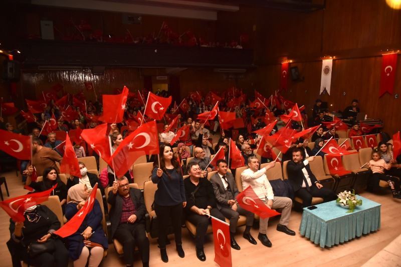 Belediye Şehir Tiyatrosu salonunda düzenlenen programa katılım oldukça yoğundu. Vatandaşlar salon girişinde Zafer Bandosu Takımı tarafından çalınan marşlar eşliğinde kapıda karşılandı. Türk bayrakları ile donatılan salonda ilk gösteriyi halk oyunları ekibi sundu. Zeybekler oynandı, kahramanlık türküleri eşliğinde Cumhuriyet coşkusu ve gururu göğüs kabarttı. İki saate yakın süren konserde katılımcılar da al bayrağımızla bayram mutluluğuna ortak oldu. Solistler ve orkestranın performansı, halk oyunları ekibinin gösterileri dakikalarca alkışlandı.