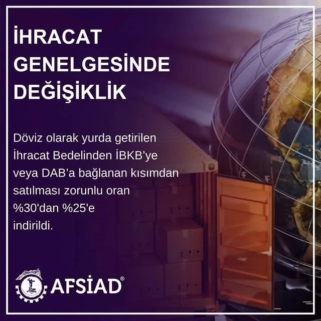 Afyonkarahisar Sanayici ve İş İnsanları Derneği (AFSİAD), üyelerini ve ilgili firmaları bilgilendirmeye devam ediyor. Değişikliğin ihracatçılar üzerinde olumlu etkiler yaratması bekleniyor.