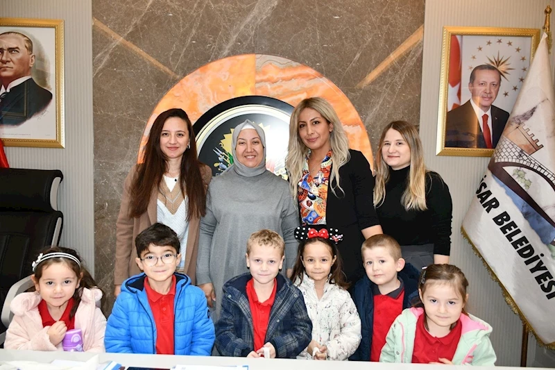 İscehisar'da, Hacı Döne Demirel Anaokulu'nun minik öğrencileri, "Dilimizin Zenginlikleri" projesi kapsamında Belediye Başkanı Seyhan Kılınçarslan'ı ziyaret etti. Okul Müdürü Çiğdem Ayyıldız ve öğretmenler de bu özel ziyarette çocuklara eşlik etti.