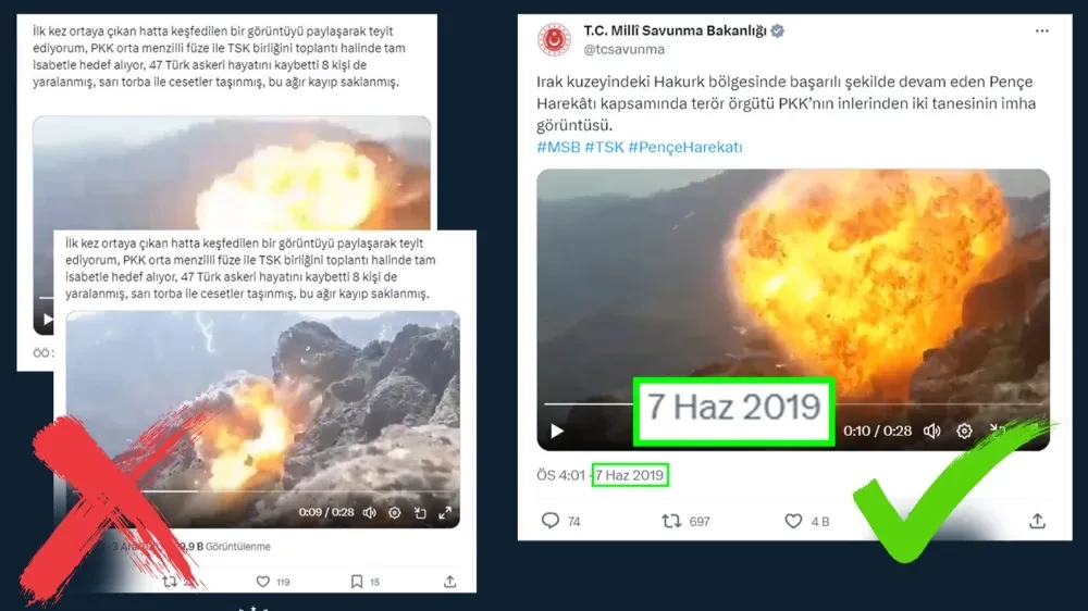 Türkiye'nin resmi iletişim organı olan İletişim Başkanlığı, sosyal medya platformlarında dolaşan ve PKK'nın Türk Silahlı Kuvvetleri birliğini orta menzilli füze ile vurduğu iddialarıyla ilgili açıklama yaptı.